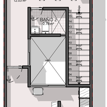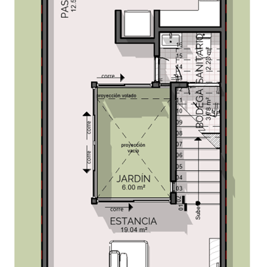 Debajo de las escaleras, en la parte más alta, tenemos un medio baño y bodega, para aprovechar bien todos los espacios.