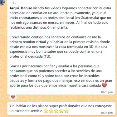 Agradecimientos: Me siento muy, muy afortunada por haber tenido la oportunidad de poder ayudar a la familia de Rocío y Samuel con el diseño de su casa, de que ellos lograron por fin la casa que tenían en mente, además de que juntos combatimos la idea que a veces se tiene de que el trabajar con un arquitecto o arquitecta es hacer de lado los gustos de la familia porque el arquitecto buscara imponerse lo más posible. Nuestro trabajo juntos fue muy bonito, parecido a jugar videojuegos gracias a las herramientas que utilizo para enseñarles el proyecto en tiempo real. Además son una pareja super linda y amorosa, espero con muchas ansias el momento en el que me compartan las primeras fotos de la construcción y saben que estaré aquí para ustedes si de nuevo necesitan mi apoyo.